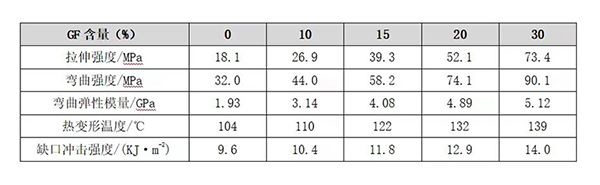 表1GF含量對PP性能的影響