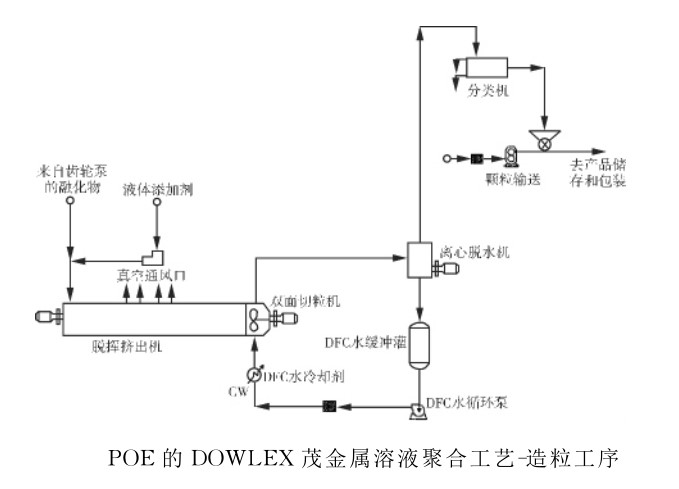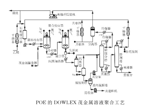 POE 典型的聚合路線和反應后處理脫揮造粒路線參考[4] :