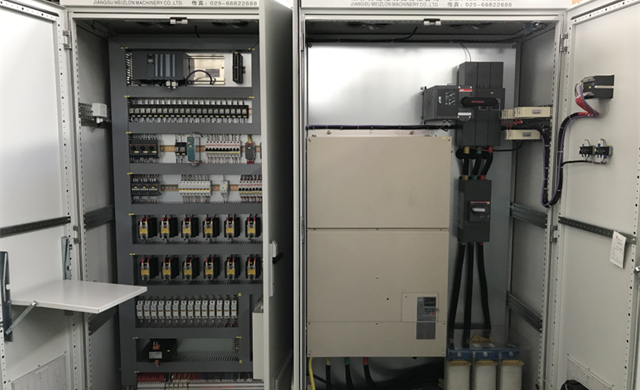 ● 擠出機電氣控制柜包括電源進線柜、主機驅動系統柜 、擠出機PLC控制柜 、輔機控制柜、觸摸屏操作臺幾個單元,主機變頻器驅動系統和擠出機PLC控制系統獨立分區安裝,溫控單元安裝在機身上,減少接線和干擾;